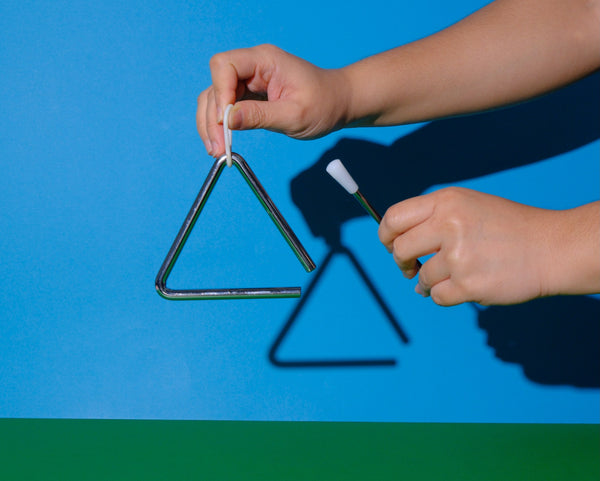 The triangle is a musical instrument with three sides and curved corners. There is always one corner where the sides do not join. This makes it possible for the instrument to vibrate making it easy for your Little one to feel this sensation.